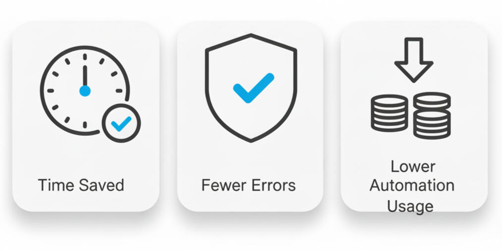 • We aim for at least ten hours saved each month within the first 60 days. If we do not hit that, we work at no cost until we do.• Up to three automations each month. Each automation has at most seven steps and a single branch.• We check your automations twice each week and fix breakages within two business days.• We improve one automation each month to lower task usage.• If you upgrade to the growth plan within 60 days, we apply half of your first month’s payment to the growth plan.