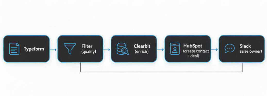 Example #1Before: Forms sat in the inbox; slow follow‑up; mistakes in the customer system.After: Form submission creates a contact and deal, assigns a sales owner, and sends a message to the sales channel.Result: Faster first response and fewer errors.